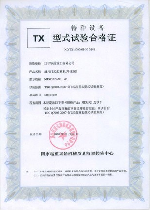 LDP电动单梁型式试验合格证